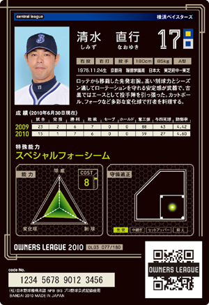 球威9 変化球11 制球10 スタミナ10 コスト8