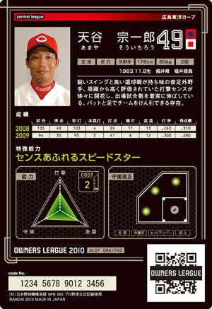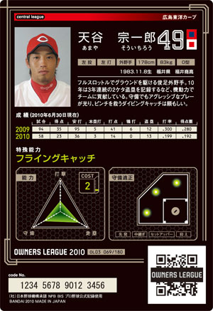 長打7 ミート9 走塁10 守備10 コスト2