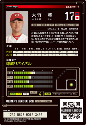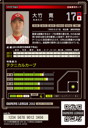 球威7 変化球8 制球5 コスト4
