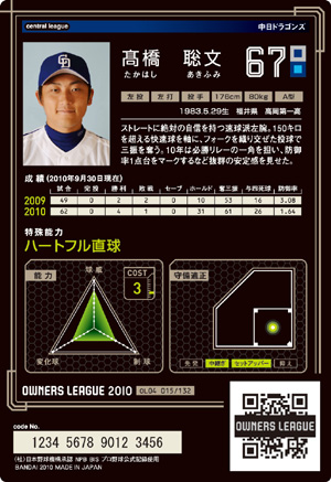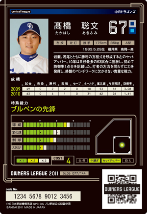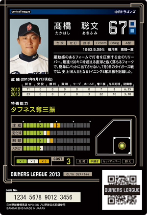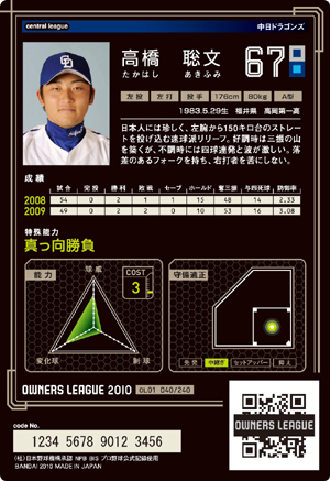 球威12 変化球9 制球8 スタミナ5 コスト4