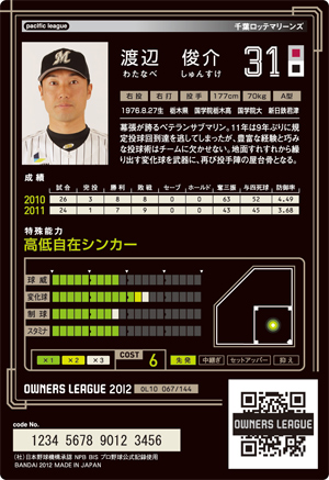 球威9 変化球12 制球12 スタミナ10 コスト6