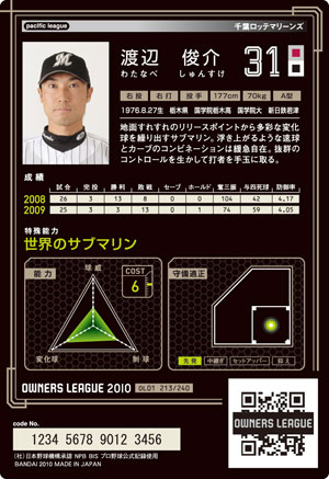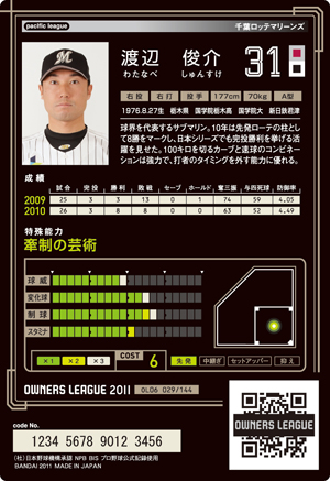 球威8 変化球11 制球10 スタミナ9 コスト6