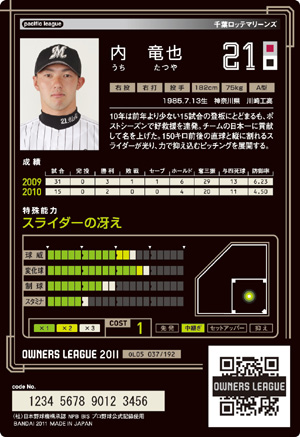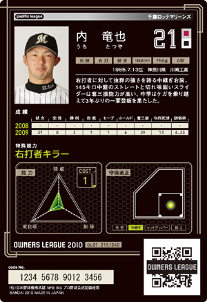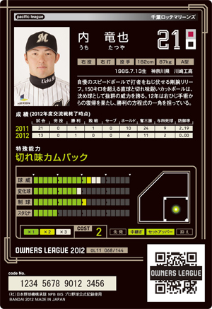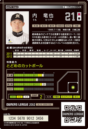 球威10 変化球13 制球8 スタミナ5 コスト1