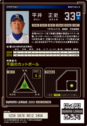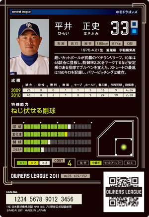 球威13 変化球12 制球7 スタミナ5 コスト4