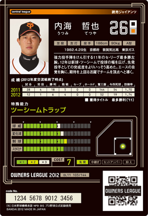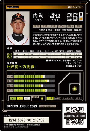 球威12 変化球15 制球11 スタミナ12 コスト6