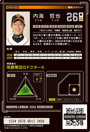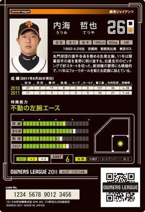 球威11 変化球10 制球11 スタミナ10 コスト6