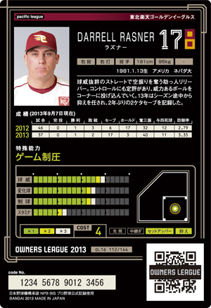 球威13 変化球12 制球11 スタミナ6 コスト4