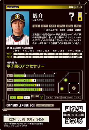 長打4 ミート7 走塁10 守備10 コスト1