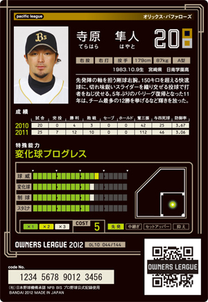 球威12 変化球10 制球9 スタミナ11 コスト4