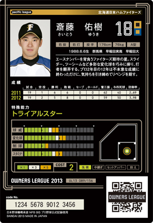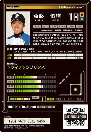 球威8 変化球10 制球11 スタミナ10 コスト1