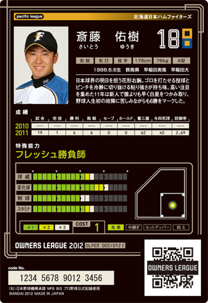球威8 変化球10 制球12 スタミナ10 コスト1