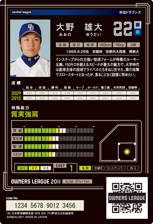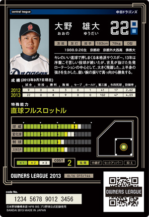 球威9 変化球7 制球7 スタミナ7 コスト1