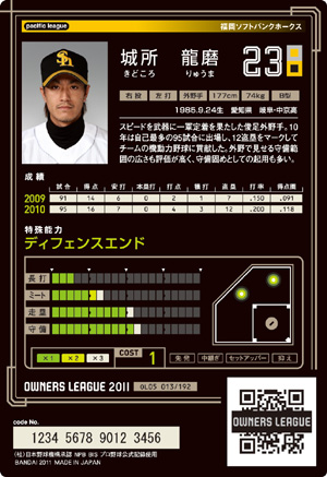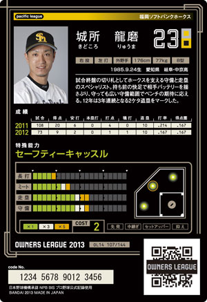 長打6 ミート5 走塁10 守備11 コスト1