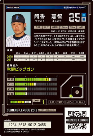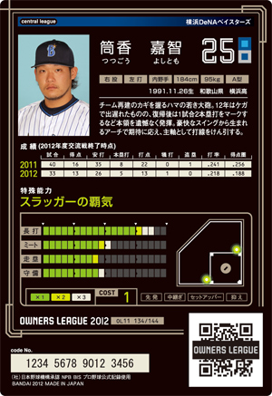 長打9 ミート6 走塁5 守備6 コスト1