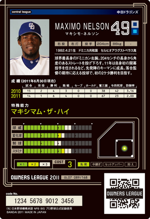 球威12 変化球10 制球9 スタミナ11 コスト3