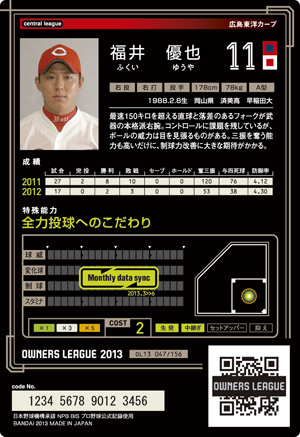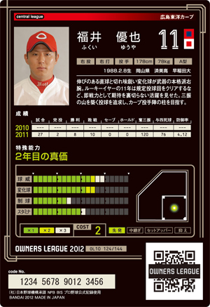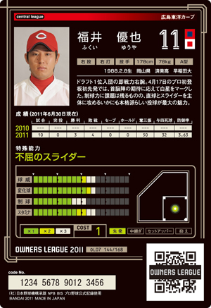 球威10 変化球11 制球8 スタミナ9 コスト1