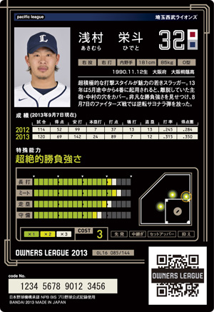 長打7 ミート9 走塁9 守備9 コスト1