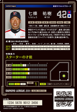 球威6 変化球7 制球8 スタミナ8 コスト1