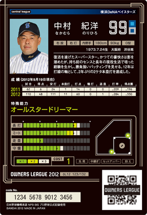 長打7 ミート6 走塁5 守備8 コスト1