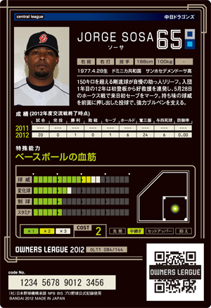 中日 ソーサ 2012年10月19日 2011 第3弾(第11弾) コンボ 【D】勝利の方程式 作戦スキル - スキル ピンチ4↑ amazonでソーサを探す ソーサとは・・・ホルヘ・ソーサ、1977年4月28日、ドミニカ共和国サントドミンゴ出身 < 前の記事次の記事 >