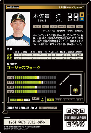 日本ハム 木佐貫洋 2013年07月09日 2013第4弾(第16弾) コンボ 先発○、継投○ 左右のエースコンビ 【F】16吉川光夫 渋みの同級生 【F】15小谷野栄一 心機一転コンビ 【F】14大引啓次 フォークリレー 【F】13増井浩俊 スキル ベテランキラー、安定感 2013第2弾(第14弾) コンボ 作戦スキル スキル < 前の記事次の記事 >