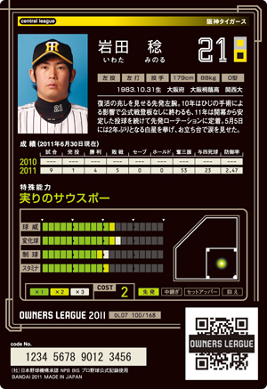 球威11 変化球11 制球9 スタミナ10 コスト2