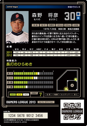 長打12 ミート13 走塁7 守備6 コスト7