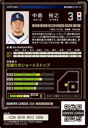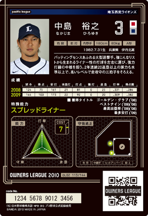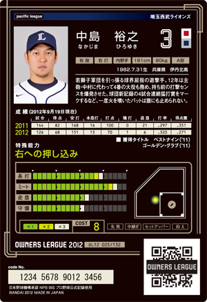恐怖の1、2番コンビ、強力クリーンナップ、ダブルクリーンナップ、右投手キラー、脅威の下位打線、豪華代打陣、スターの継承(【Vc】12松井)、伝統の花形(【M01】田辺)、追いかける背中(【L】11浅村)